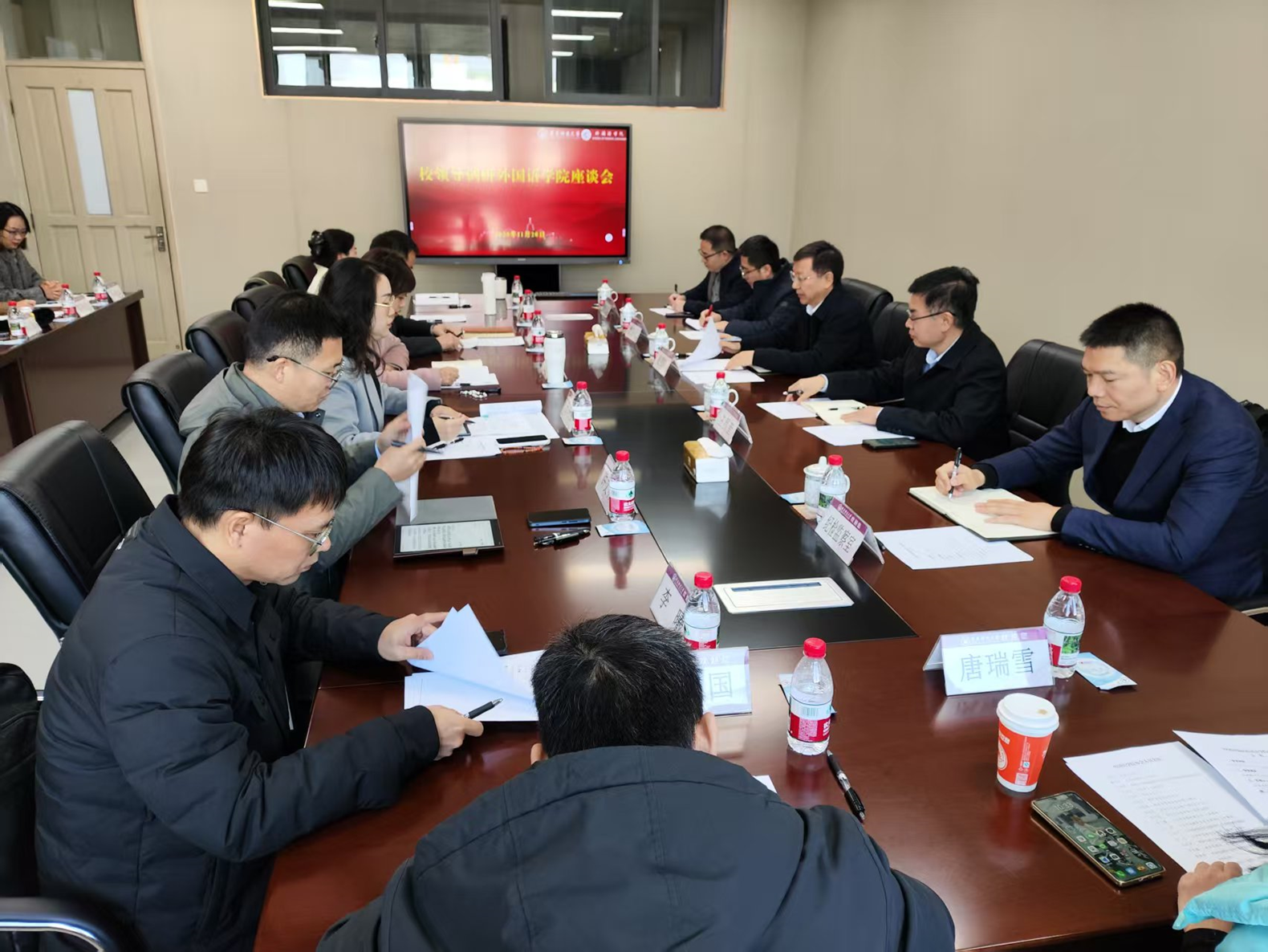 11月20日上午,党委副书记、校长赵明阶深入外国语学院开展调研。学校党委常委、纪委书记、监察专员王昌奎,纪检监察室、教务处等职能部门负责人陪同调研。外国语学院班子成员、科级干部、各系(教研室、中心)主任及教师代表参加座谈。会议由外国语学院党总支书记王润华主持。
