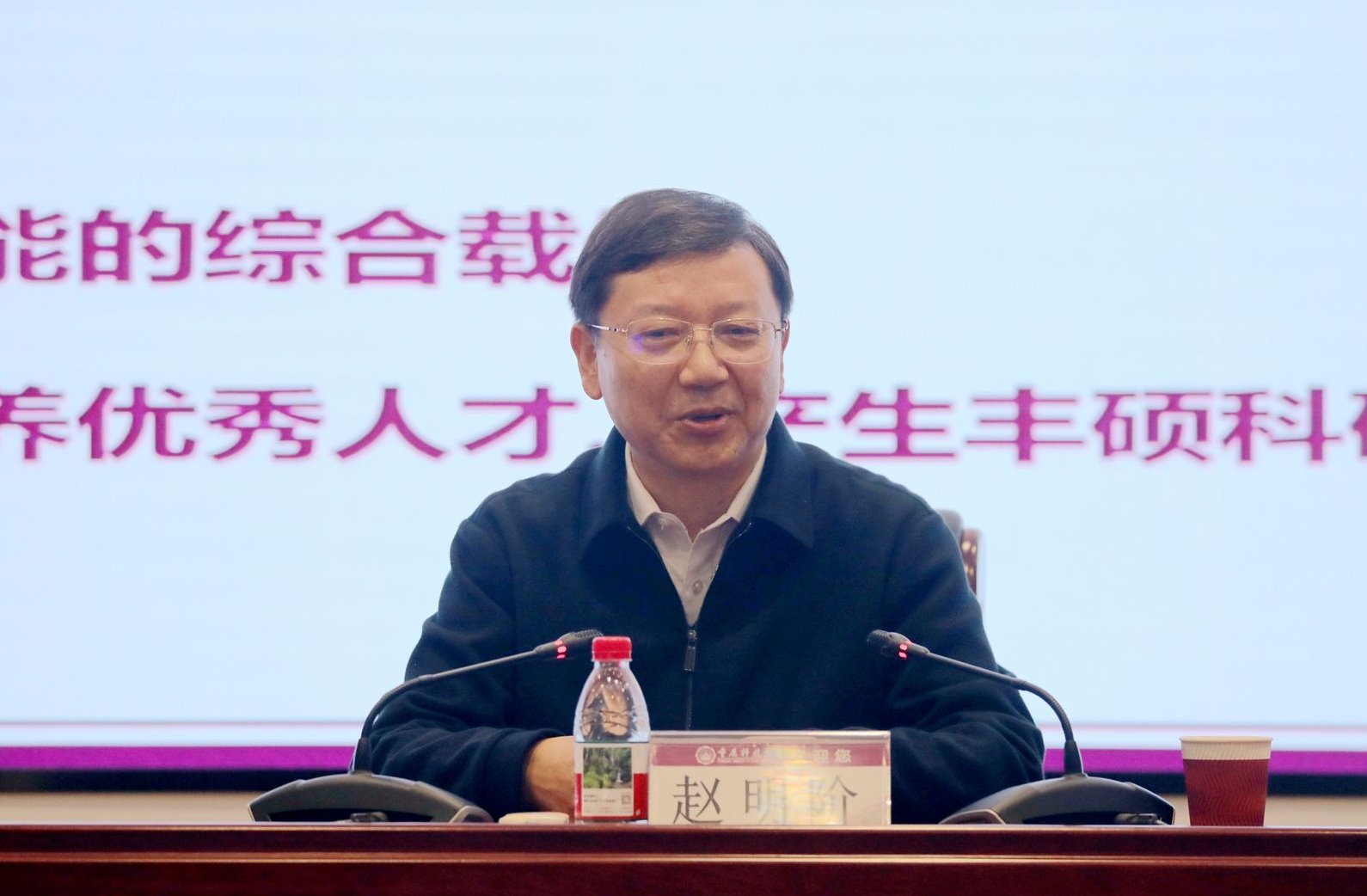 赵明阶围绕“学科建设的深耕与求索”“师德师风的淬炼与弘扬”“时代使命的认知与担当”三大维度,系统阐述了学校在高水平应用研究型大学建设中的战略路径与实践成效。他深入解读了“强工、厚理、兴文、促交叉”的学科发展思路,阐释了“1238”学科建设机制和“11351”产教融合人才培养体系。他带领大家重温《新时代高校教师职业行为十项准则》,并结合教育部“红七条”“六禁令”及典型失范案例,警示新教师严守底线、涵养师德,做到“心有大我、至诚报国”“言为士则、行为世范”。